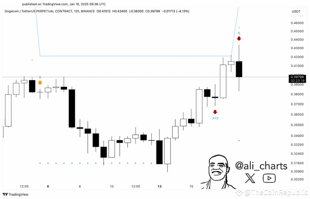 Dogecoin's struggle to overcome resistance at $0.44 reflects growing bearish sentiment in the market. With key indicators like TD Sequential, MACD, and BBP signaling downward pressure, traders should prepare for potential declines unless buying momentum returns.