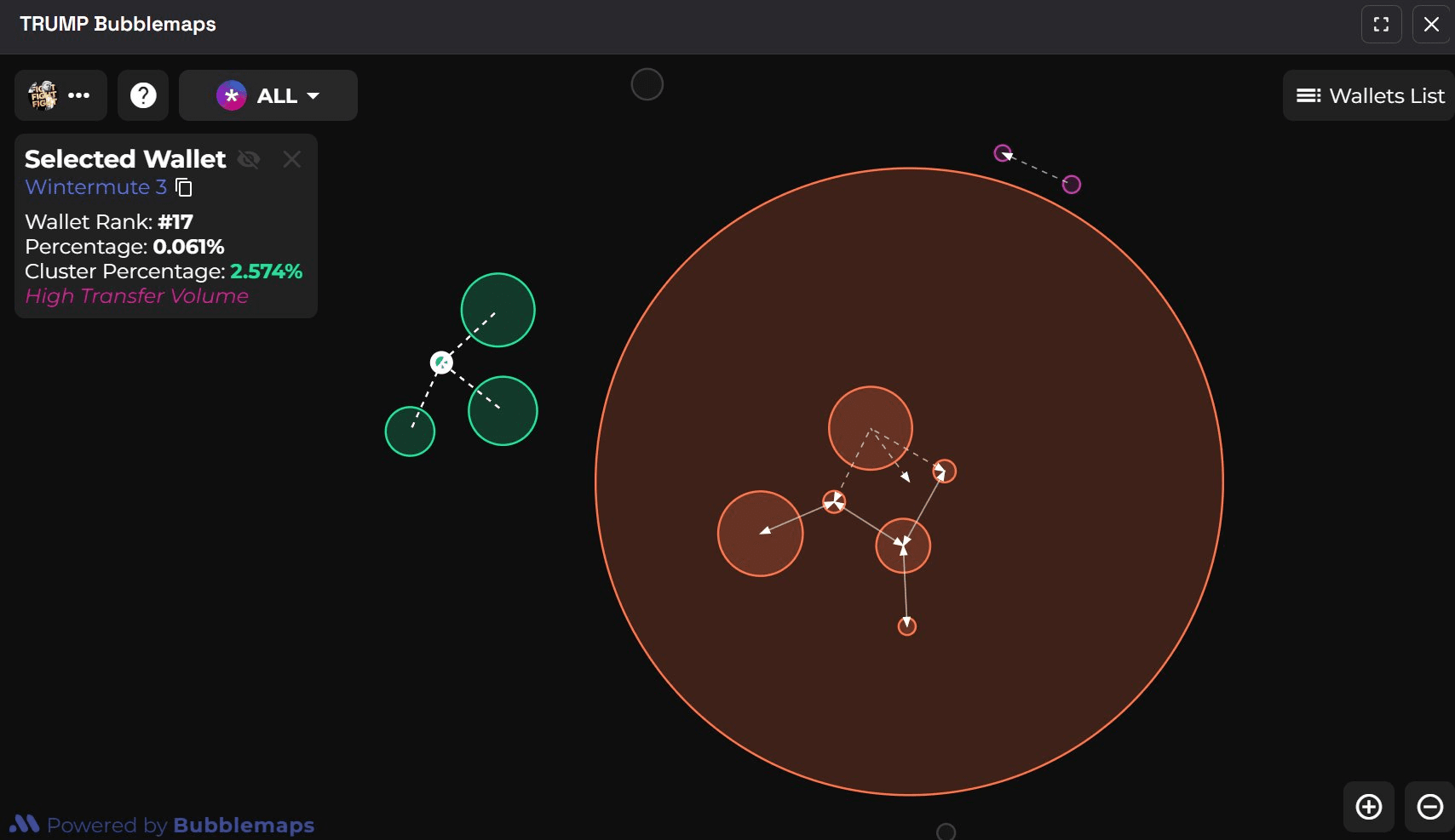 地址有3个,还有应该是某个大户的,Trump集团的主要是(也就是庄家地址)可以看到这些钱包持仓都很靠前的,说明 $TRUMP 是强庄币。