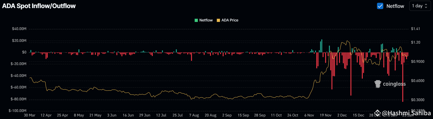 Despite the price speculation, over the past seven days, it appears that long-term holders and investors have been significantly accumulating ADA tokens, as reported by the on-chain analytics firm Coinglass. Data from spot inflow/outflow revealed that exchanges during the same period witnessed an outflow of ADA tokens worth $146.60 million.