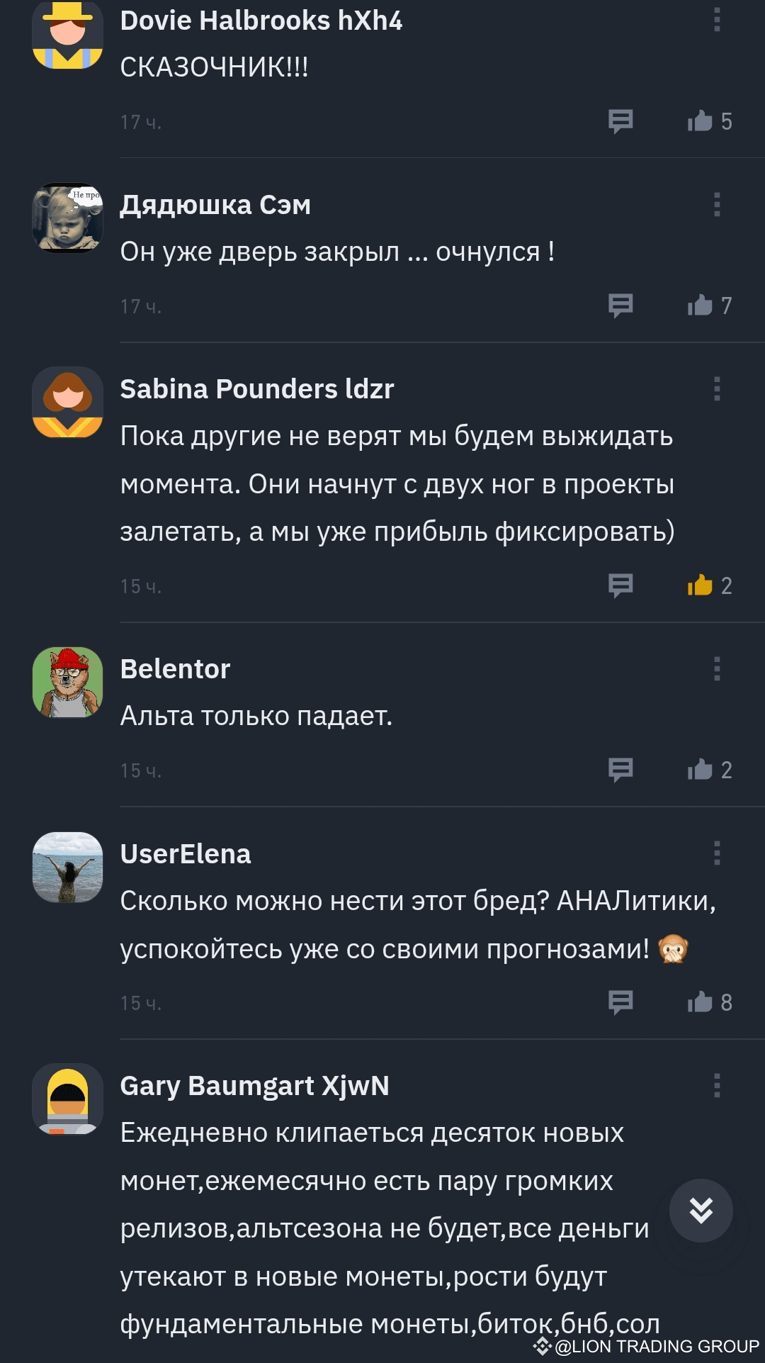 Вижу шквал негативных комментариев на пост о скором альтсезоне, и это меня только радует. Почему? Потому что альтсезон всегда наступал тогда, когда толпа хомяков была настроена максимально негативно против рынка.