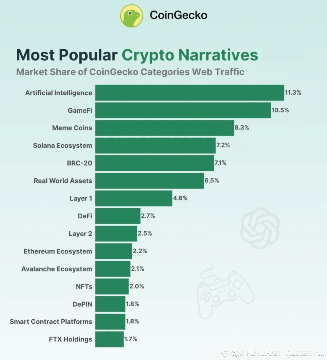 Même maintenant, avec le boom des memecoins, nous pouvons voir que seul le secteur de l'IA affiche les meilleures performances