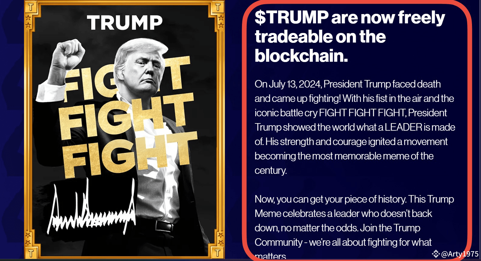 Let’s watch this token reflect the strength and courage of the man it represents. Show the world what the President of the United States can do!