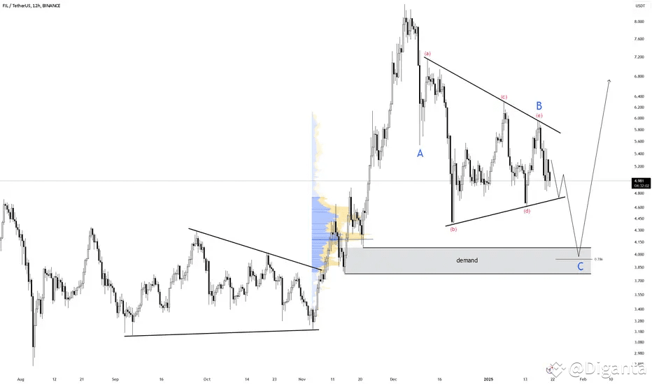 In this case, FIL is currently in wave B of an ABC pattern. Once wave C completes, we could see a significant upward move in the price of FIL.