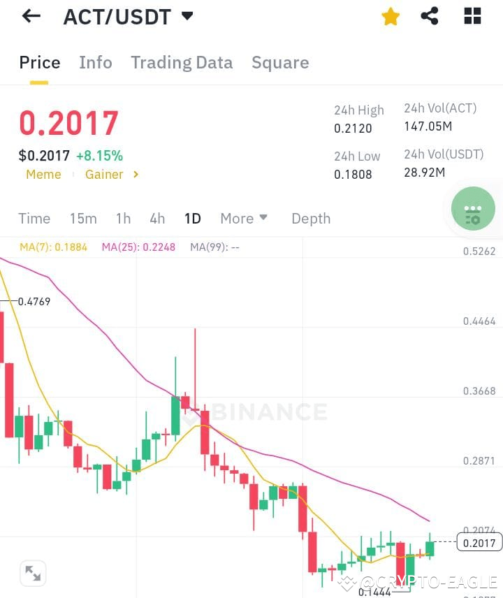 Currently, ACT is trading at $0.2017, showing an +8.15% increase over the last 24 hours. As a meme token, this price surge suggests strong market interest, likely fueled by social media momentum or a trending narrative.