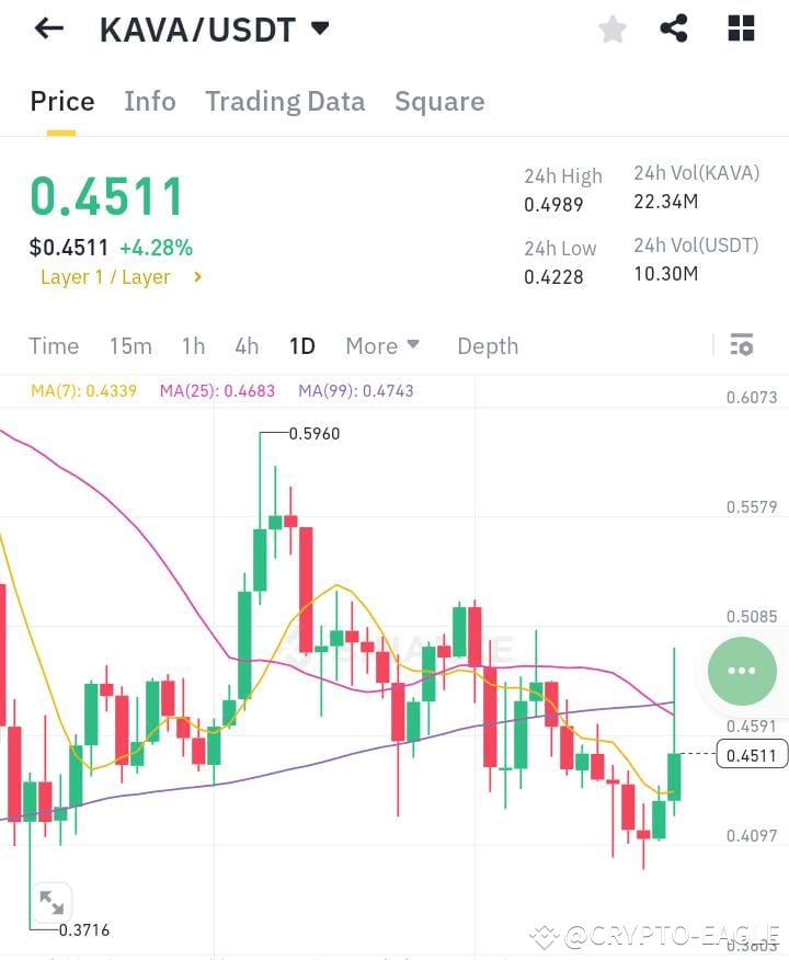 Currently, KAVA is trading at $0.4511, showing a +4.28% increase in the last 24 hours. As part of the Layer 1/Layer space, KAVA has seen some positive movement, likely driven by market sentiment or project-specific news.
