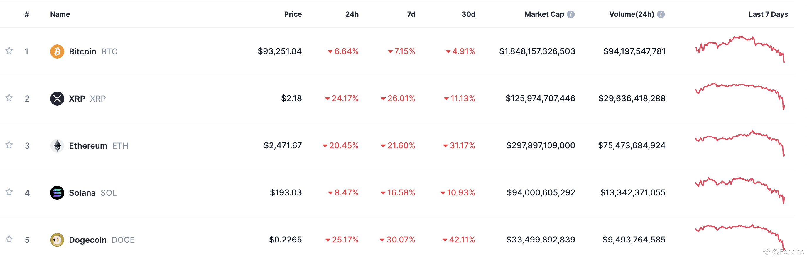 По состоянию на 08:24 по московскому времени биткоин потерял 6,5% стоимости и достиг отметки в $93 тысячи. В определённый момент цена опускалась до $92 тысяч. Ethereum за сутки подешевел на 20%, до $2475, а в моменте падал до $2326.