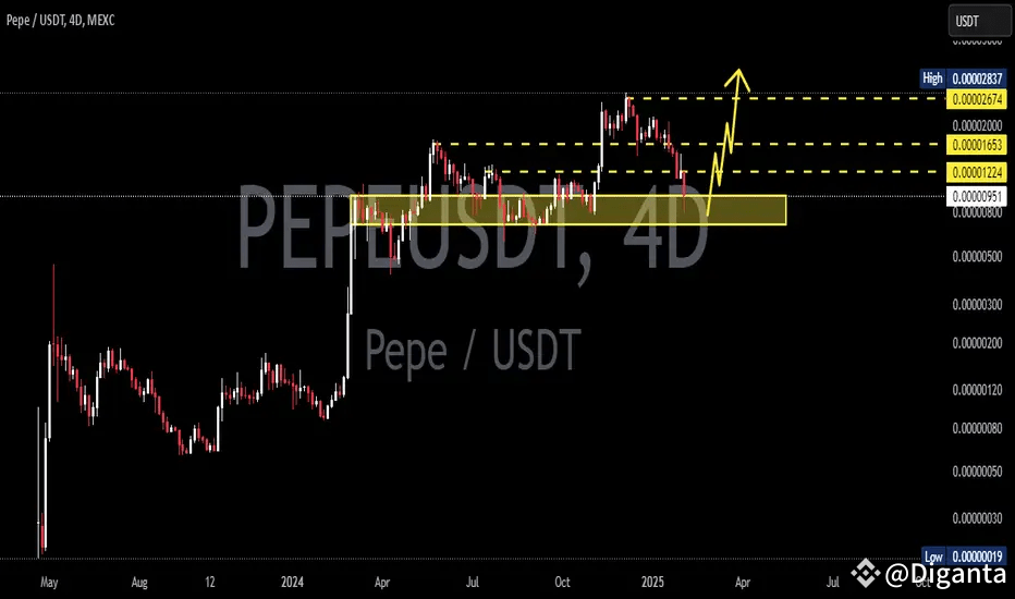 Looking at the 4-day chart, something's caught our eye 👀 – PEPE appears to be bouncing off a significant support level!