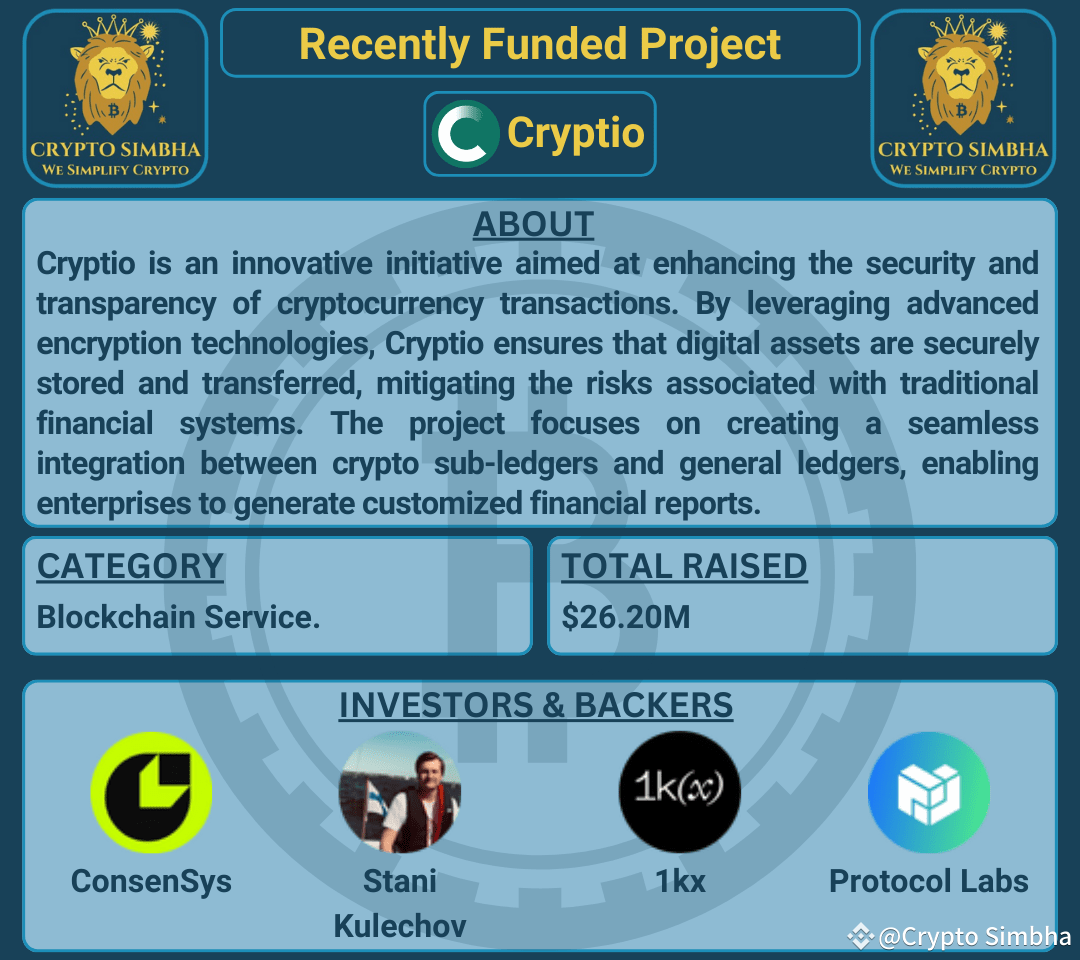 🔹About: Cryptio is an innovative initiative aimed at enhancing the security and transparency of cryptocurrency transactions. By leveraging advanced encryption technologies, Cryptio ensures that digital assets are securely stored and transferred, mitigating the risks associated with traditional financial systems. The project focuses on creating a seamless integration between crypto sub-ledgers and general ledgers, enabling enterprises to generate customized financial reports. With its enterprise-grade reporting suite, Cryptio facilitates end-to-end crypto accounting, making it easier for businesses to adopt and manage cryptocurrencies. The project's primary objective is to provide a robust framework for secure and efficient crypto transactions, fostering trust and confidence in the digital currency ecosystem.🚀🌐