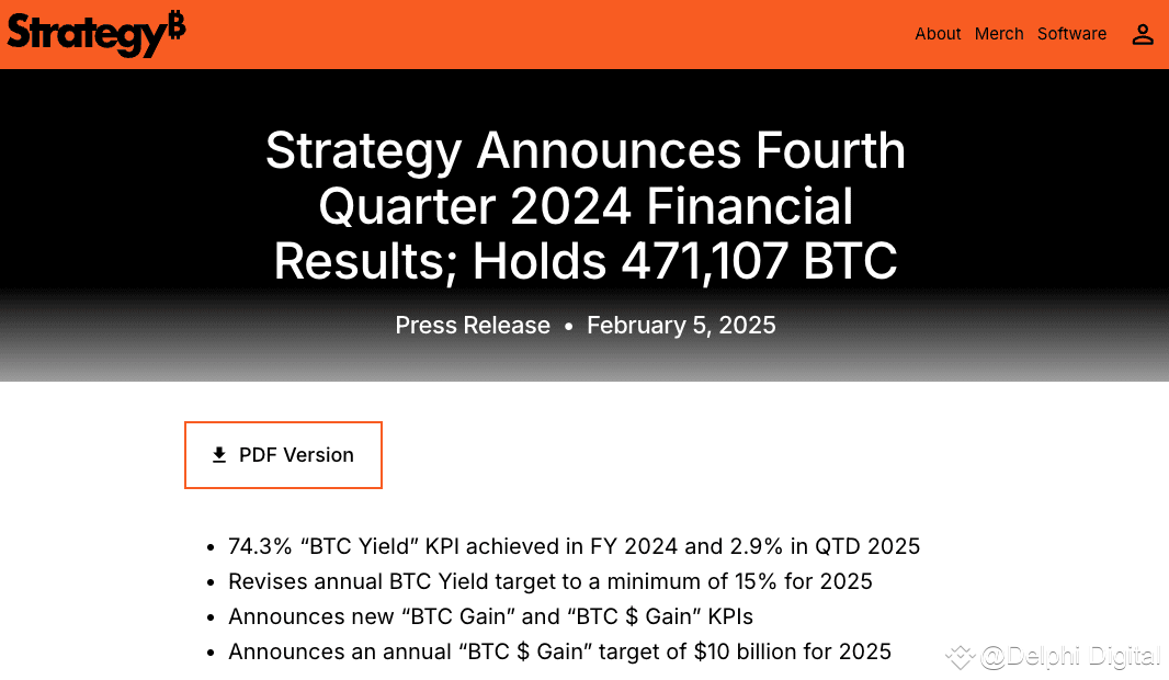 Shortly after the name change, Strategy released its Q4/2024 financial statements, showing that the company recorded a BTC yield of 74.3% in 2024 and revised its 2025 target to more than 15%.