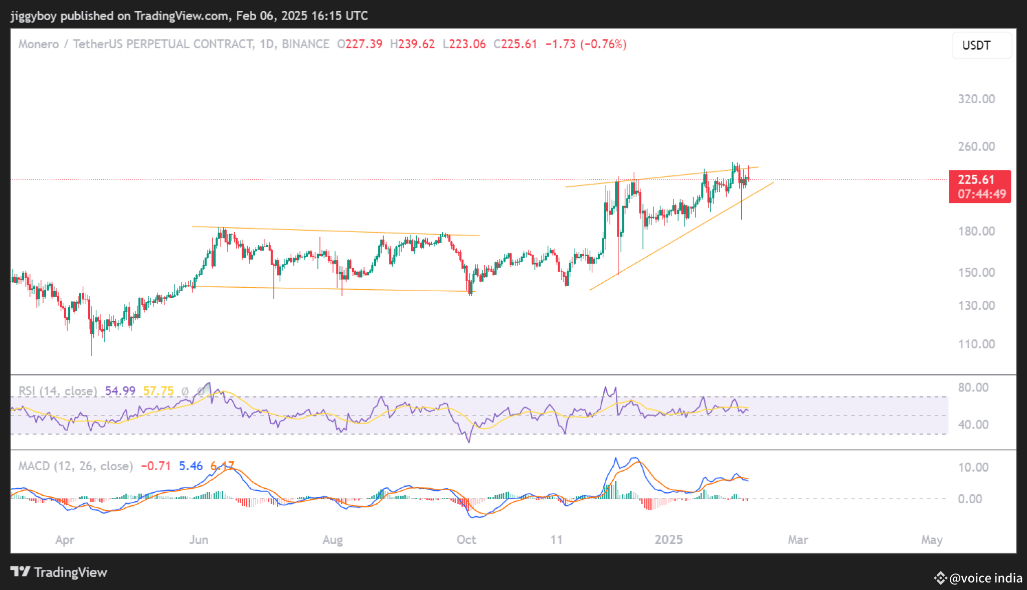 At the time of writing, *Monero (XMR)* is trading at *222.50*. This is a key price point as *XMR* tests a critical resistance level that could decide whether the bullish momentum continues or if we see a potential dip. 📊