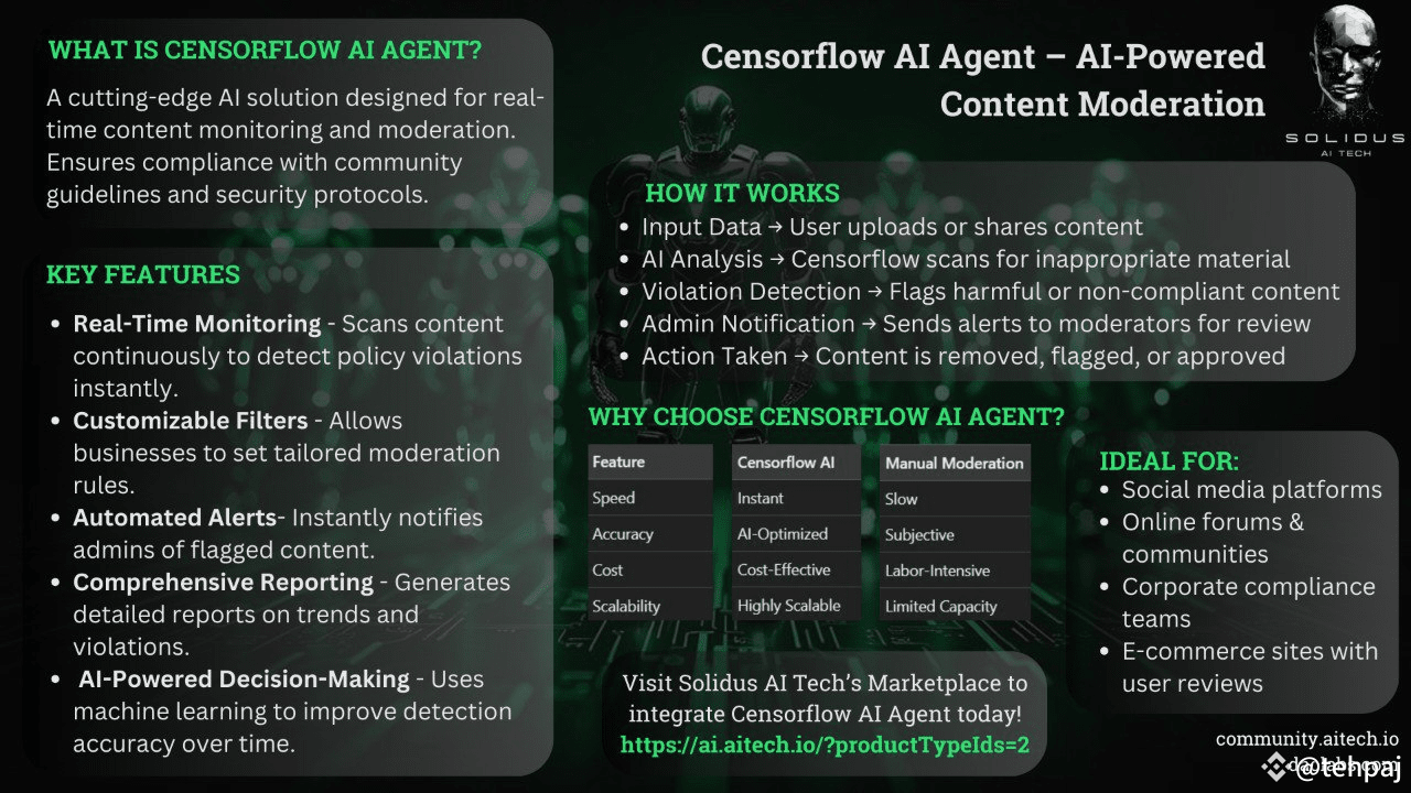 Interested in trying it out? Explore the Censorflow AI Agent today on Solidus @AITECH marketplace!