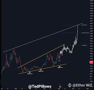 The initial major Ethereum goal is to reach $5,000 based on the Fibonacci extension in the chart. The price level at this point acts as a typical obstacle that traders could face before continuing their upward movement.