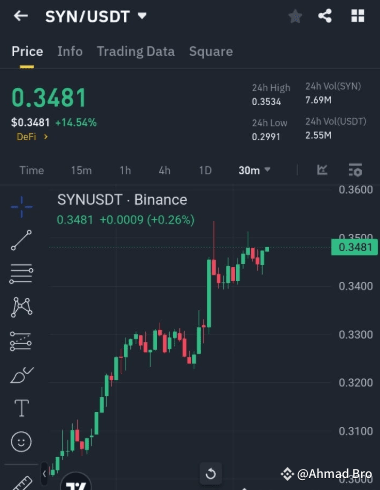 $SYN is currently exhibiting strong bullish momentum, with the price trending towards critical resistance levels. A decisive break above the $0.3700 mark could signal a continuation of this upward trend, potentially unlocking higher targets at $0.4000 and $0.4500.