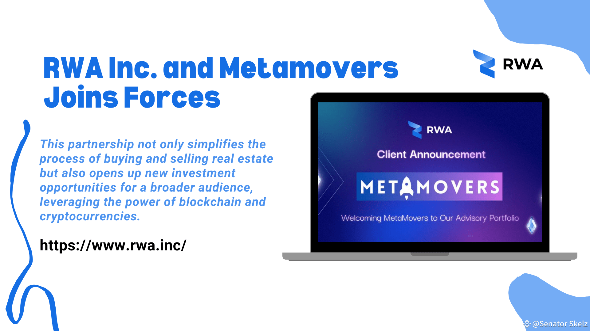 - Benefits to RWA: This collaboration enhances RWA Inc.'s mission to expand access to tokenized real-world assets (RWAs). By integrating Metamovers' technology, RWA Inc. can offer its clients a more efficient, secure, and transparent way to invest in real estate, aligning with their goal of improving liquidity and accessibility in the RWA market.