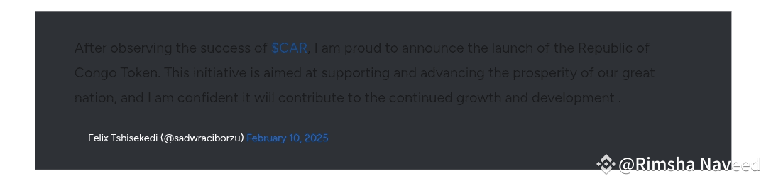 After the CAR memecoin’s success, an unexpected event occurred. The official X (formerly Twitter) account of Felix Tshisekedi, the President of the Democratic Republic of Congo (DRC), appeared to promote a new memecoin launch.