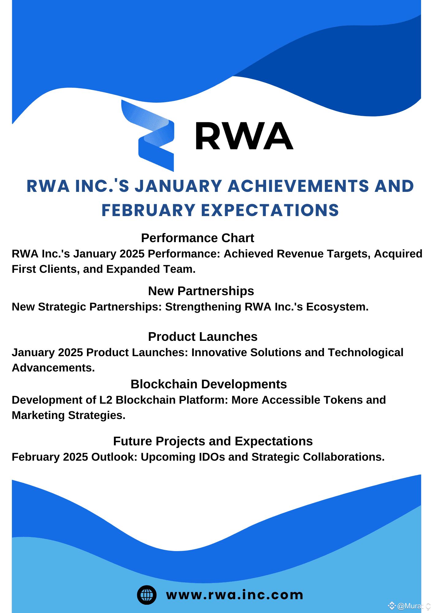 In February, RWA Inc. is expected to make further progress. The company will continue to work on future #IDO s, blockchain developments, and strategic partnerships. In particular, new IDOs and further development of the blockchain platform will present significant opportunities for investors and users. In addition, new strategic partnerships will further strengthen RWA Inc.’s ecosystem and consolidate its industry leadership.