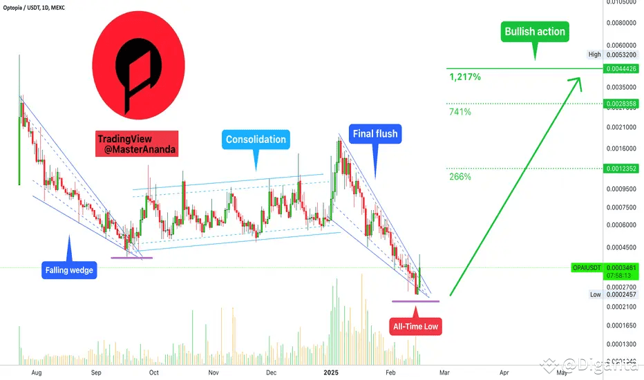 * All-Time Low (ATL) with Low Volume: Optopia recently hit a new ATL, lower than its September 2024 low. However, the low trading volume tells a story. It suggests the bears are exhausted and throwing in the towel, making way for the bulls.
