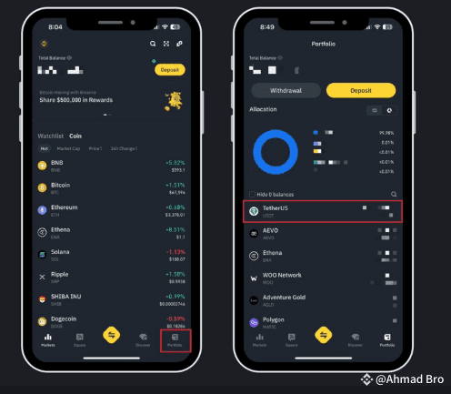 1. Tap the "Portfolio" button at the bottom right to access your assets.