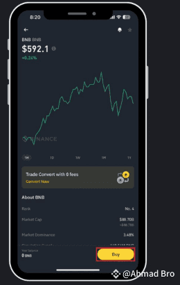 1. Select the cryptocurrency you wish to purchase. For example, if you choose BNB, you'll see the trend chart, current price, and coin details.