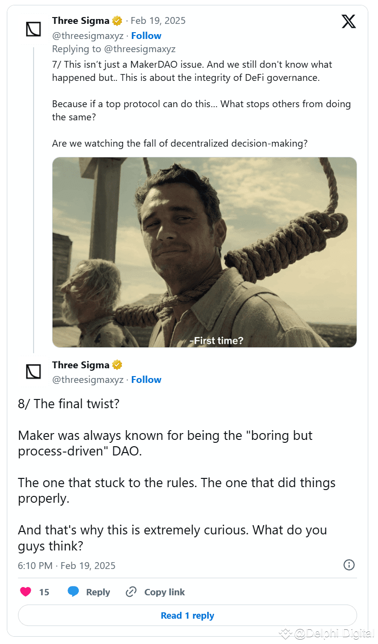 This incident is not only a problem for MakerDAO but also a problem with the integrity of DeFi governance. If a leading protocol can do this, what prevents others from doing the same? Is this the beginning of the collapse of decentralized decision-making?