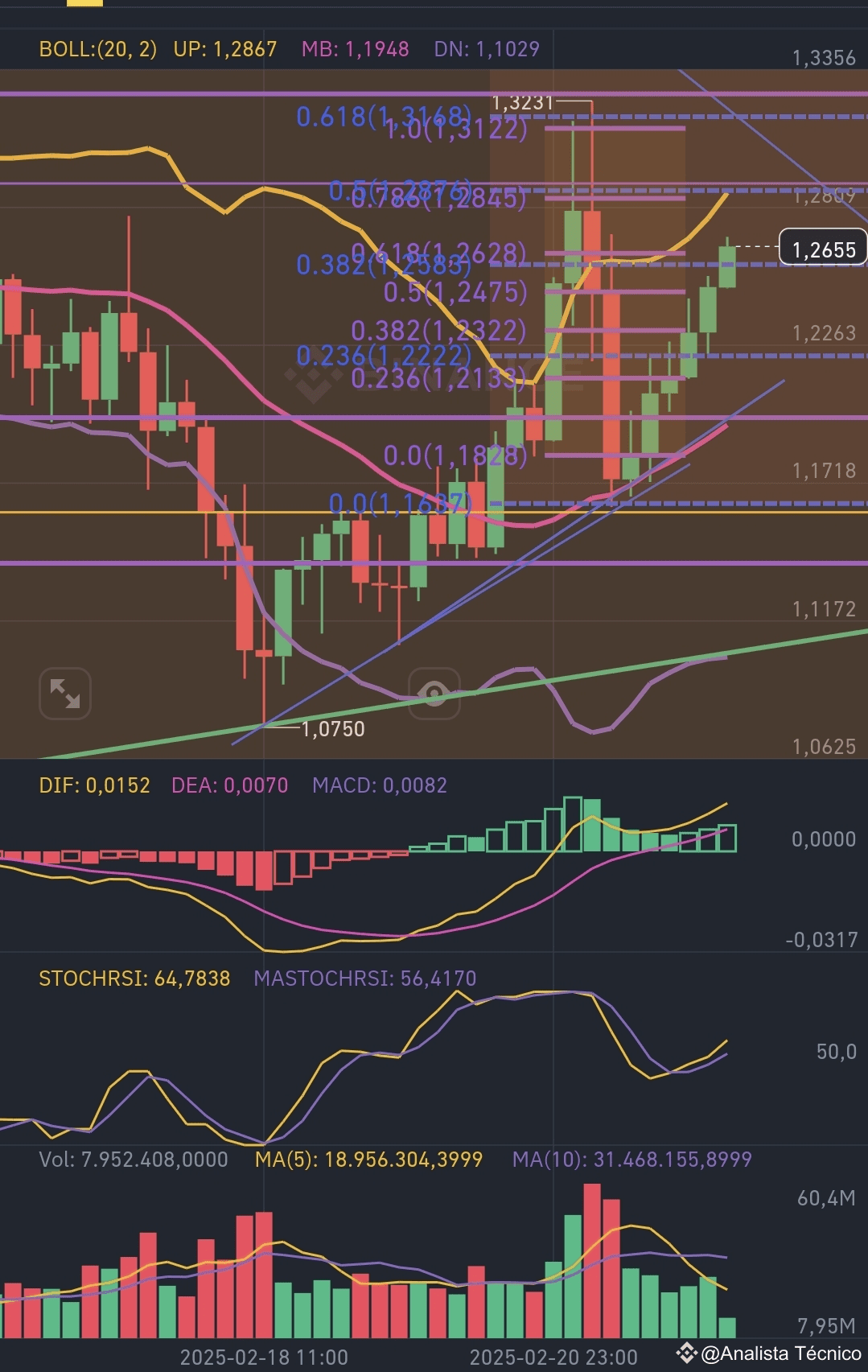 1.2685 (61.8% de Fibonacci): Resistencia inmediata; romperla confirmaría un nuevo impulso alcista.