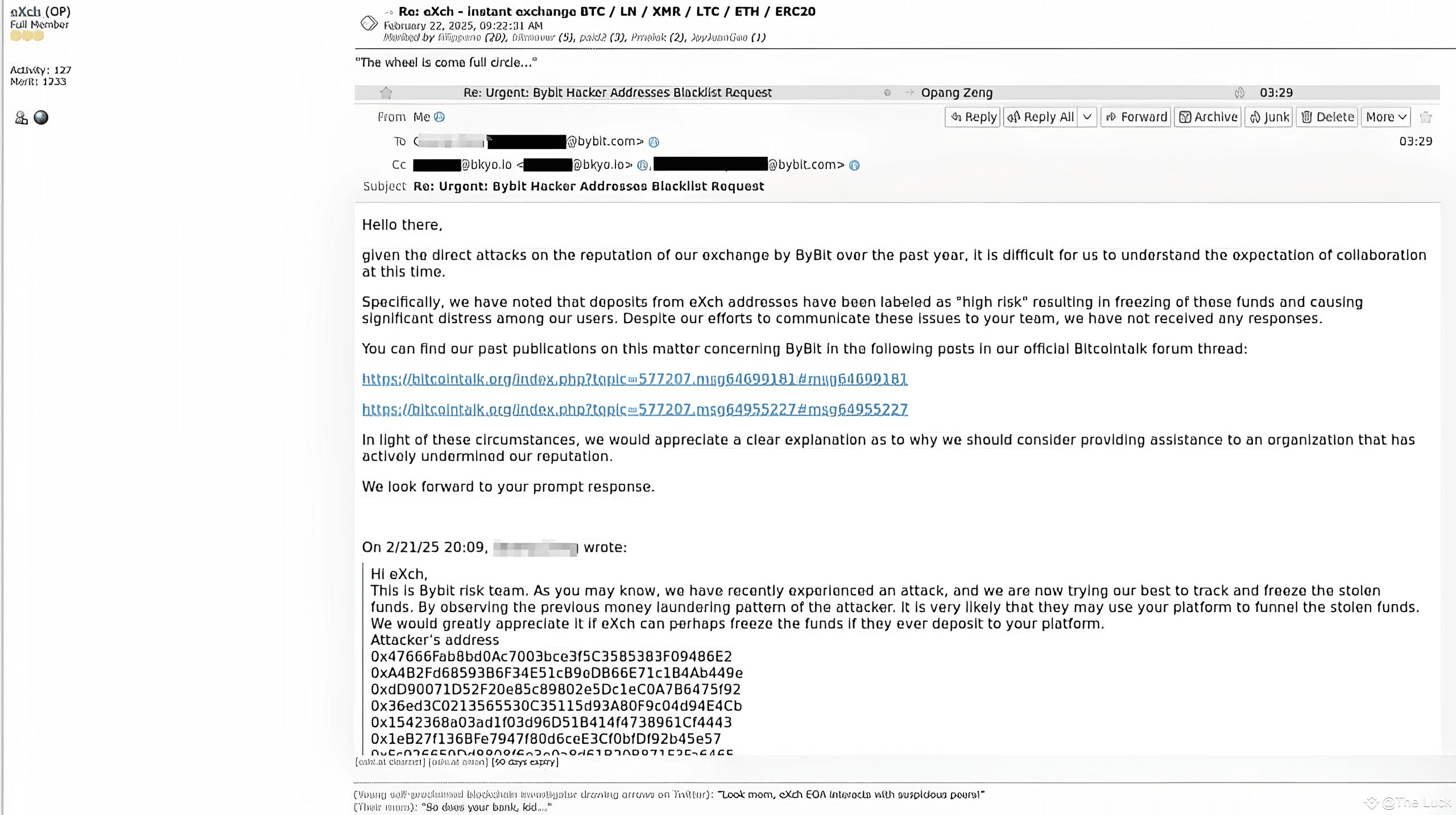 A #bybit , conhecida por sua postura vigilante contra crimes financeiros, entrou em contato com a equipe da eXch após identificar transações suspeitas ligadas a um grupo de hackers norte-coreanos, conhecido por sua atuação em ataques cibernéticos e roubos de criptomoedas. Os hackers, que já são alvo de sanções internacionais, usaram a plataforma eXch para movimentar grandes quantias de criptomoedas roubadas.
