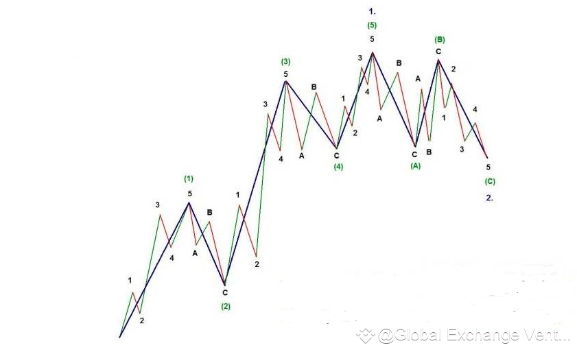 Las ondas de avance, son la 1, 2, 3, 4, 5, siendo ondas impulsivas, la 1, 3 y 5, mientras que la 2 y 4, son ondas correctivas.