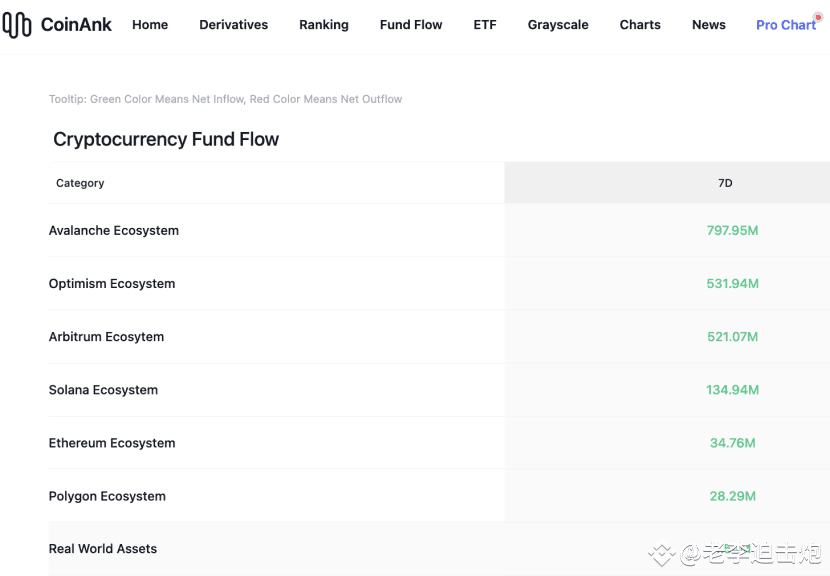 CoinAnk数据显示,过去7天,加密市场按概念板块划分,资金净流入集中在雪崩生态、Optimism生态、Arbitrum生态、Solana生态、以太坊生态、Polygon生态以及RWA板块等几大领域。而近一周的时间,也有不少币种都出现了轮动上涨。选取市值前500如下,S、FORT、LCX、STPT、RUNE和ELA等代币涨幅相对靠前,可继续优先关注强势币种的交易机会。