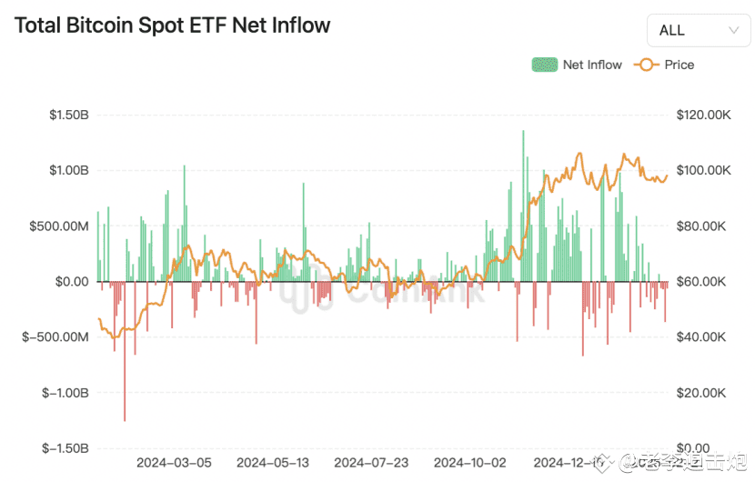 值得关注的是,本轮资金外流并未伴随链上持仓量显著下降,暗示流出资金可能来自二级市场套利盘而非长期持有者。未来若比特币价格突破关键阻力位,机构资金或重启流入,但需警惕美股波动对ETF资金流的传导效应。当前市场正进入机构主导的存量博弈阶段,流动性分层现象或将加剧。
