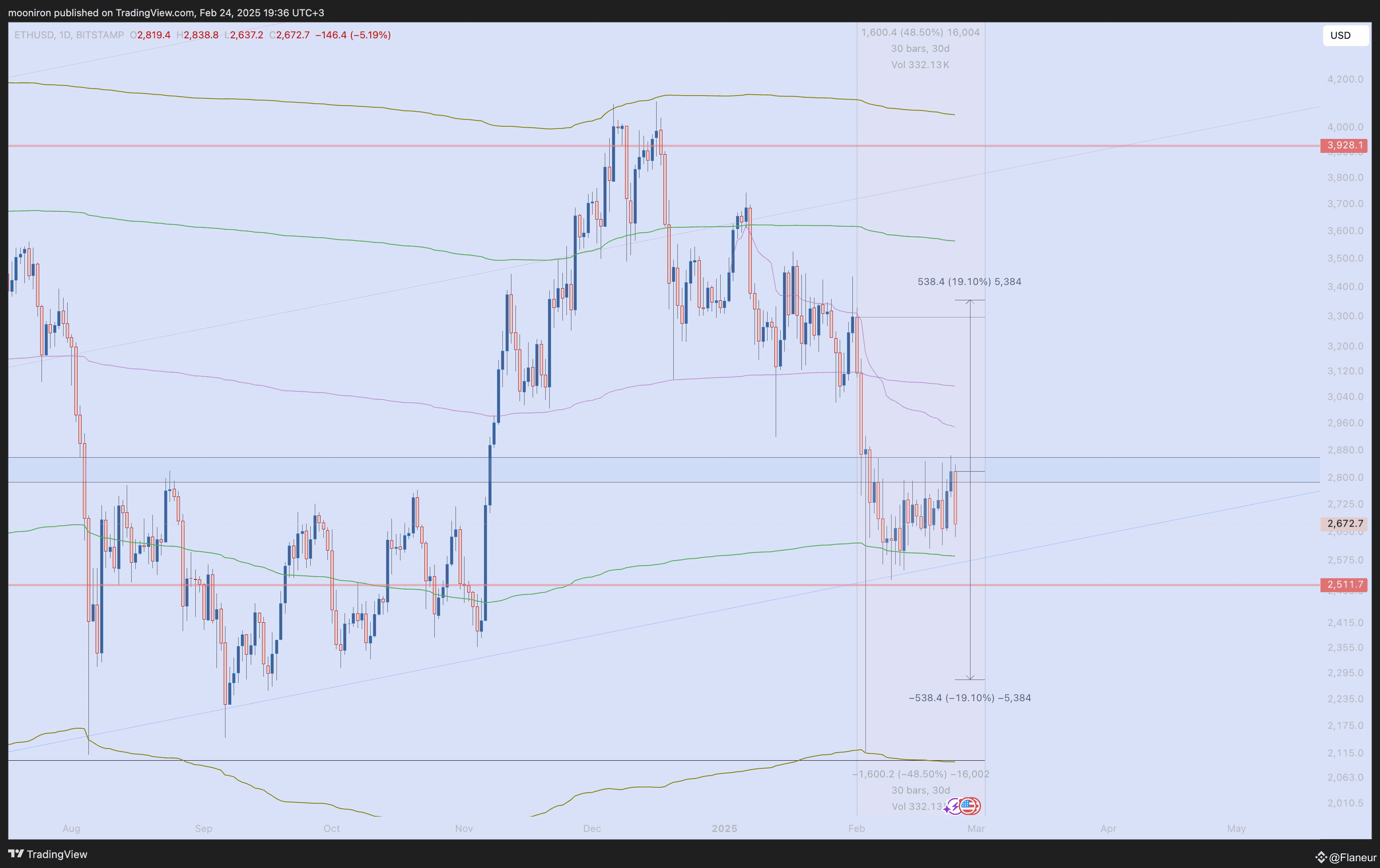Last week, the market saw Ethereum attempting to break the 2850 mark while Bitcoin moved like a stable coin. The market faced two sell-offs due to stagflation and ETH hack news. Despite this week being relatively quiet in terms of news, the Core Personal Consumption Expenditures Price Index data on Friday will be significant. Additionally, Trump will be speaking today at 10 PM.