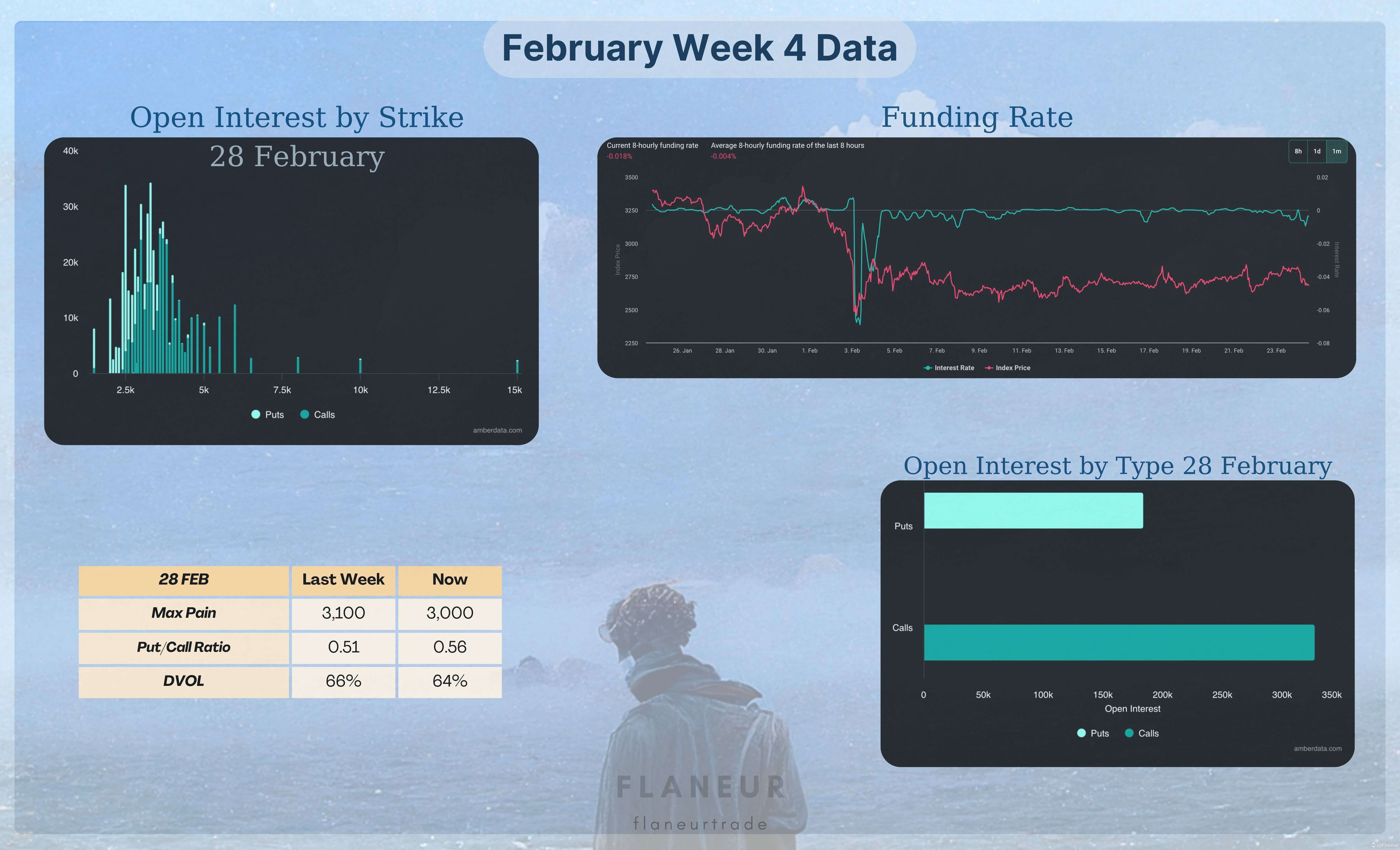 This week, we may see much higher volatility in ETH compared to BTC. The total Open Interest for the February 28 contracts is 515k contracts, valued at 1.4 billion dollars. The Max Pain level has dropped to 3000, and while the Put/Call Ratio has risen from 0.51 to 0.56, indicating a bullish market expectation, we are seeing an increase in put contracts. We can say that volatility is approaching in ETH.