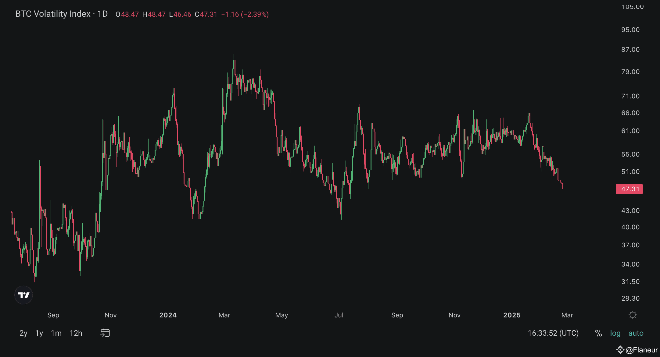After its weekly opening, Bitcoin closed slightly above its weekly opening with minor movements. Although it attempted to reach 100k, it faced a sharp sell-off from there. The price is still below the monthly opening. The Volatility Index for BTC has reached its lowest level since July 2024. If DVOL remains below 42, we could see significant price movements.