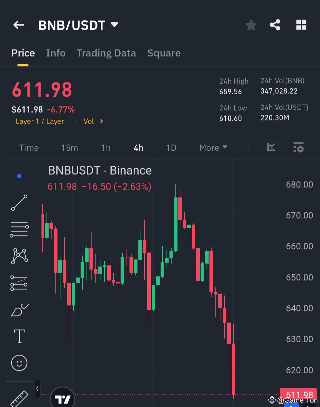 🔍 Если BNB пробьет уровень ниже $600, приготовьтесь к более глубокому падению к $570.
