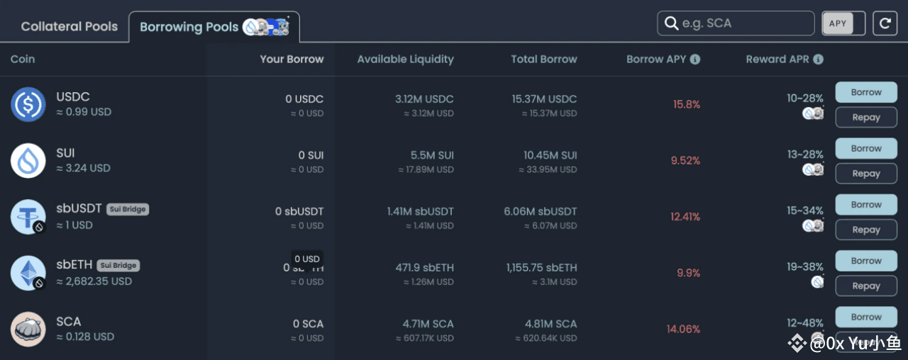 Scallop 借贷协议:Sui 生态近期开放了激励补贴,导致借款成本与收益倒挂。例如,SUI、sbETH 和 sbUSDC 的借出激励高于借款利率,用户可以通过存款和借款双向获利。