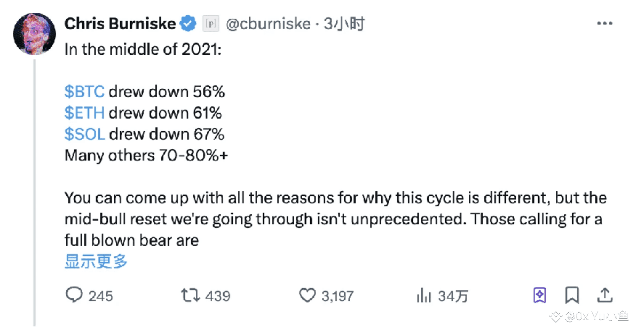 而Placeholder合伙人Chris Burniske则认为这只是牛市中期的回调,并非熊市的开端。