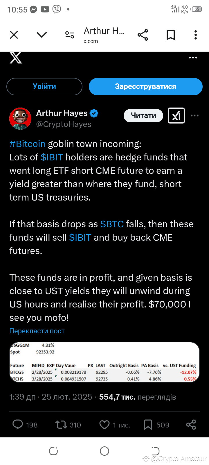 Експерт пояснив, що багато власників IBIT — це хедж-фонди, які відкрили лонг-позиції щодо ETF і шорт-позиції на Чиказькій фондовій біржі (CME). Це дозволяє їм отримувати прибуток за рахунок різниці між ціною активу на спотовому та ф’ючерсному ринках.