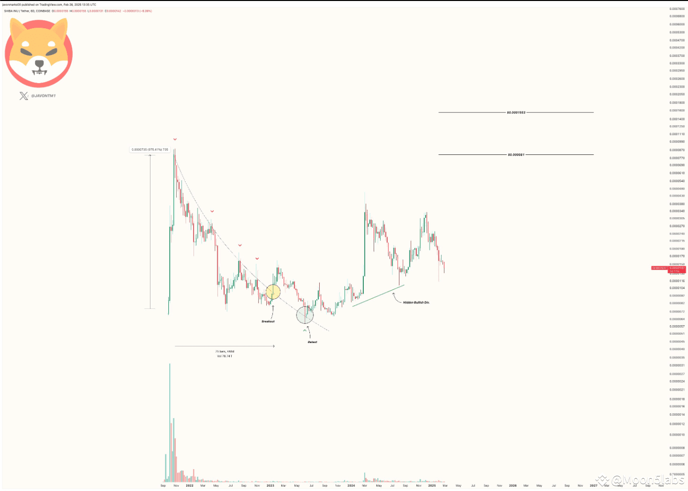 🔍 Crypto analyst Javon Marks highlighted that SHIB is still holding onto a key breakout level from late 2022/early 2023. Based on historical trends, he predicts a 450% surge, projecting SHIB to hit $0.000081.