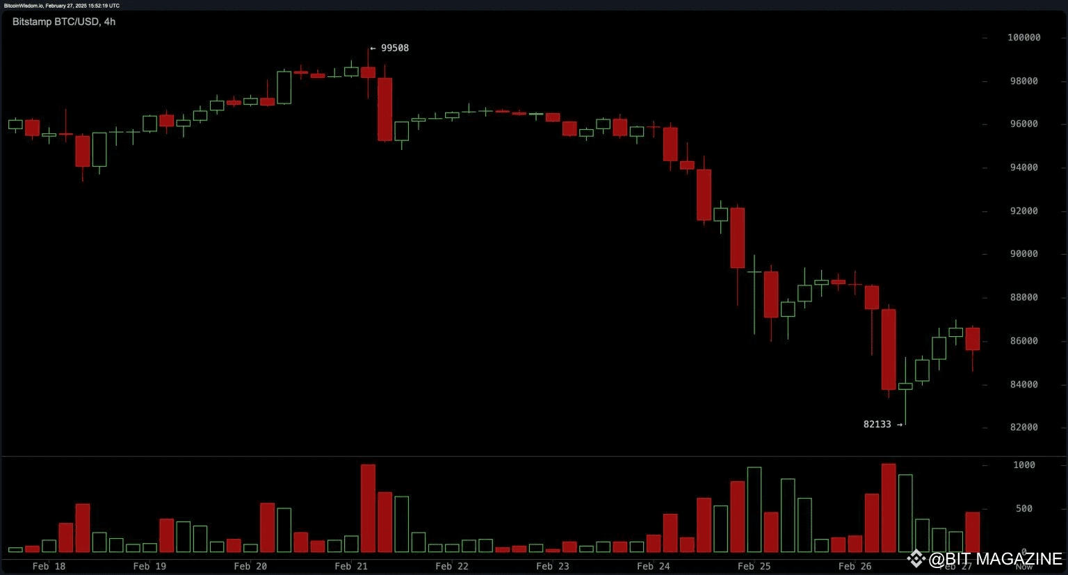 BTC/USD 4H chart via Bitstamp on Feb. 27, 2025.