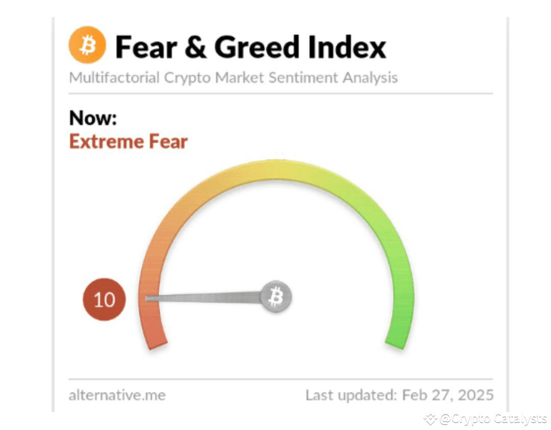 The Bitcoin Fear and Greed Index reached its lowest level since June 2022 at 10 today. The