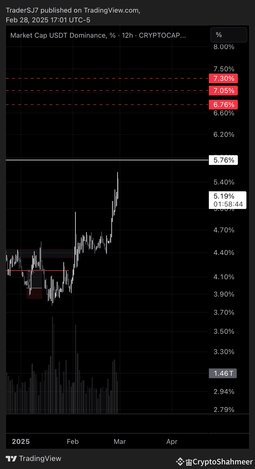 • Money Flow: A drop to 5.76% suggests investors are moving funds from USDT back into crypto assets, driving up prices.