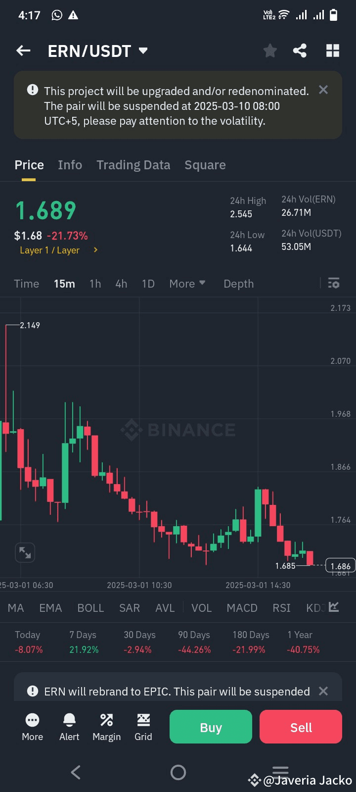 Important Note: Always rely on official sources for information about token upgrades and delistings.#TraderProfile #Ethernity #ERN #delisting