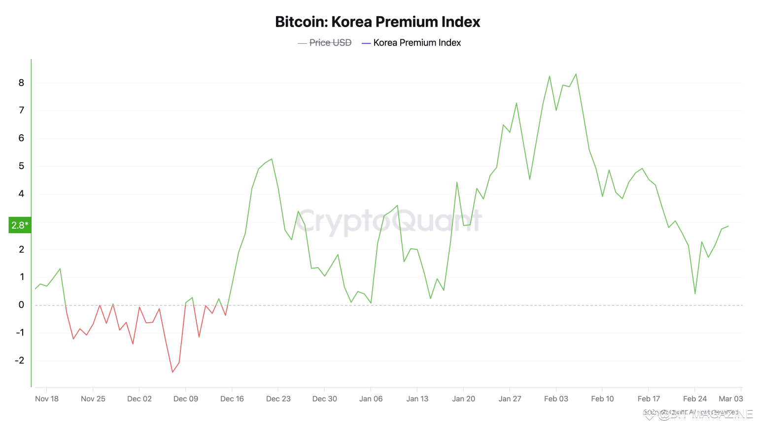 South Korea’s bitcoin premium diminished late February and into early March, resting at 2.84% on March 1 before tapering to 2.18% as of Sunday, March 2, per current metrics. By 8 a.m. Eastern Time (ET) that day, the nation’s BTC valuation eclipsed global averages by $1,870—a persistent and present price anomaly.