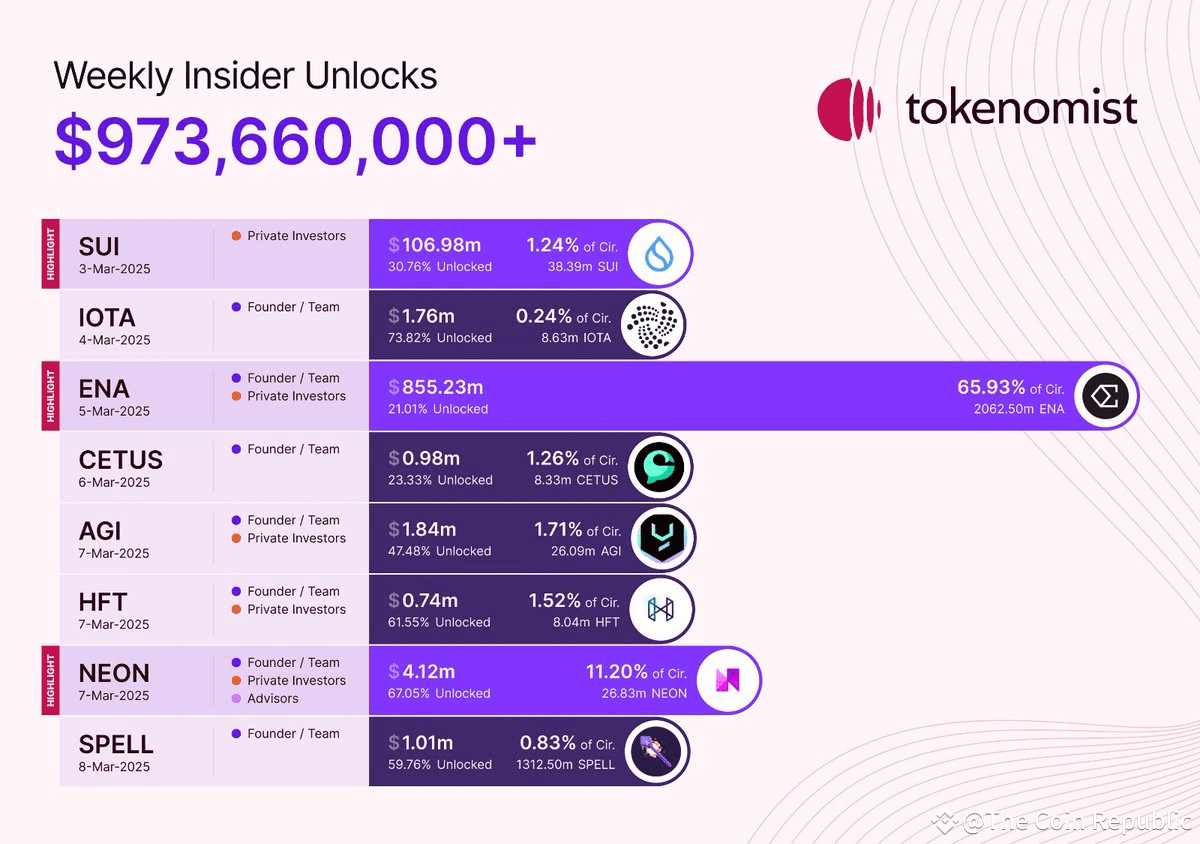 ENA Token: $ENA is set to release around $855.23 million worth of tokens, which is approximately 65.93% of the total circulating supply on March 5. These tokens are about to be divided among founding team members and private investors, which may result in potential sell pressure.