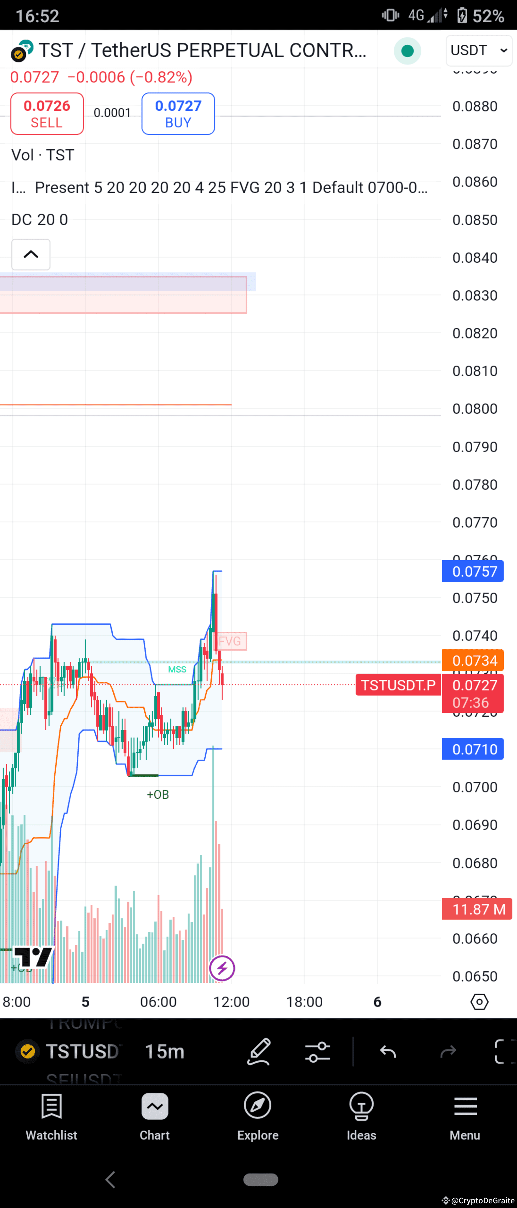 TST/USDT recently pumped hard, attempting to break resistance but faced strong rejection at 0.0757.