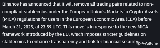 Recent developments suggest that Binance might be holding off on listing Pi Network’s native token due to compliance issues with Pi's KYB (Know Your Business) process. This speculation aligns with Binance's recent actions under the EU’s MiCA regulations, where they announced the removal of all non-compliant stablecoin trading pairs by March 31, 2025.