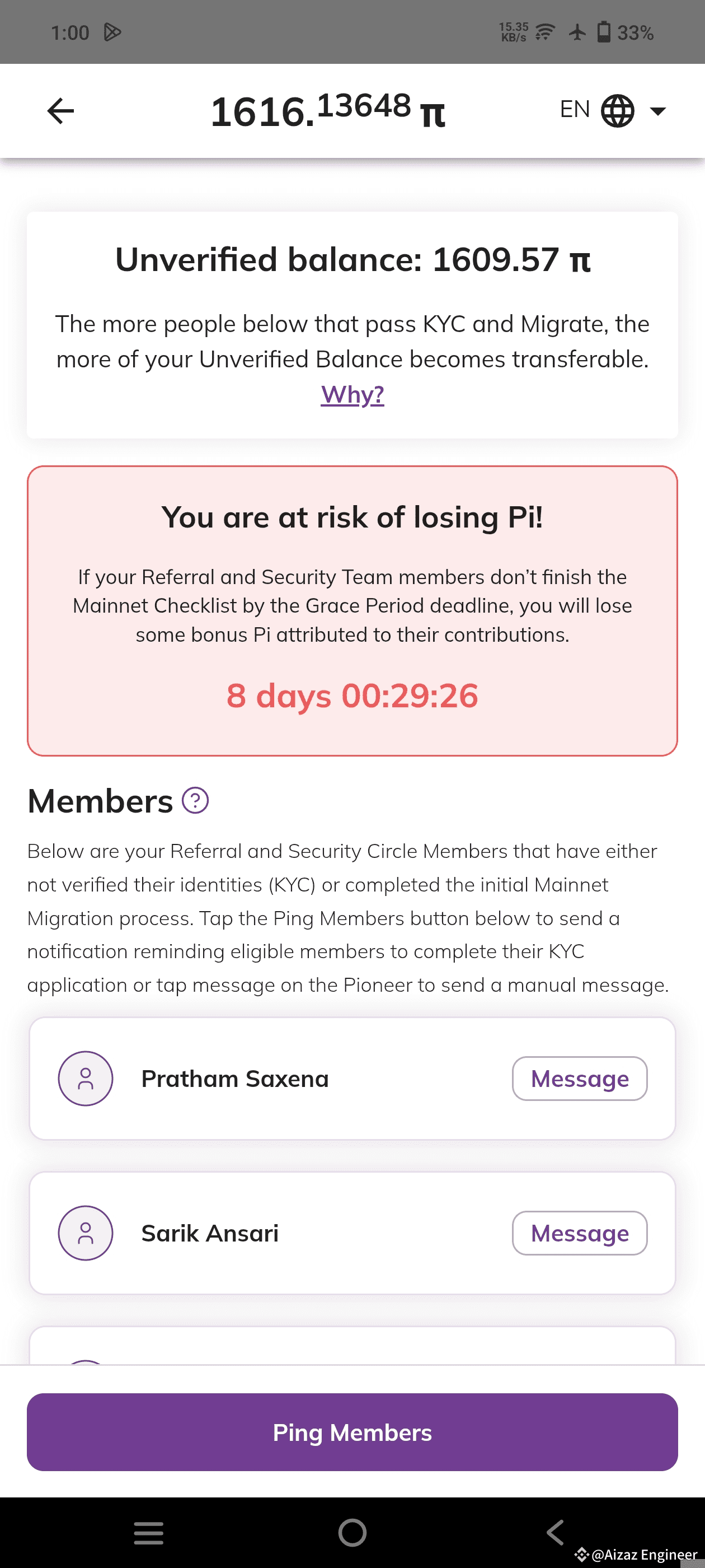 Since this section also consists of "bonus Pi" from KYC'd members in your security circle/referrals, this is the reason why there are pioneers who have absolutely zero non-KYC'd members in their security circle/referrals, but they still see unverified balance (ofc there is utility and node bonus as well, but a greater part comes from security circle and referrals) on their dashboard.