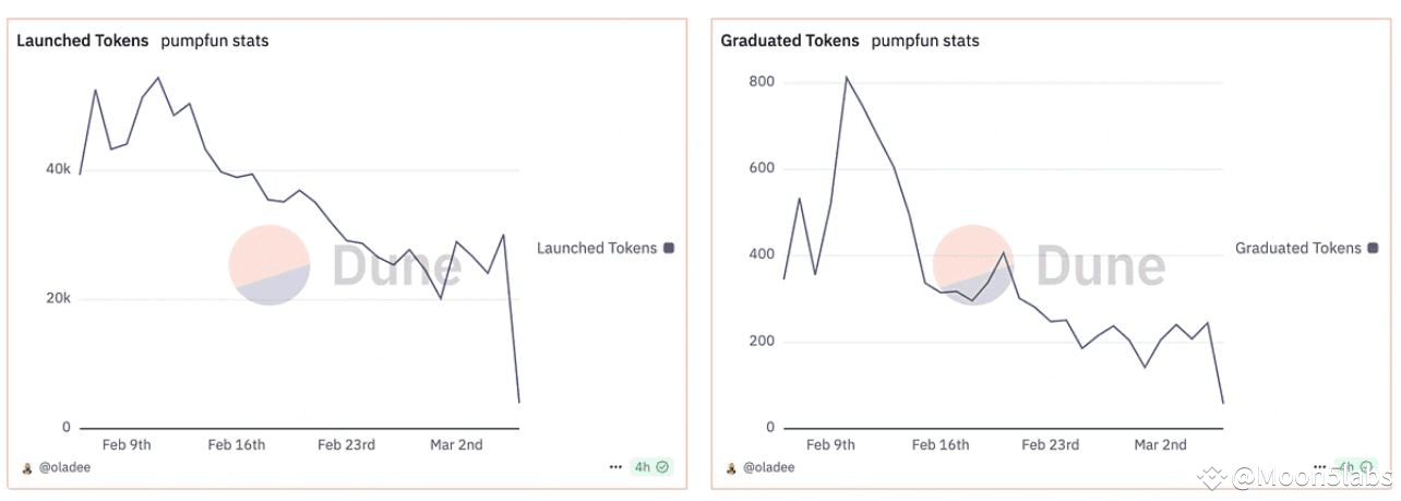 Newly created memecoins dropped by over 90% compared to their February peak.
