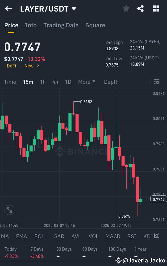 Currently, the price of LAYER/USDT is around 0.7747, indicating a potential short-term downtrend. In the future, if the price breaks below the support level of 0.7600, it may lead to further downward momentum, while a break above 0.7800 could signal a reversal. trading signal with tighter take-profit targets based on the current price of LAYER/USDT.