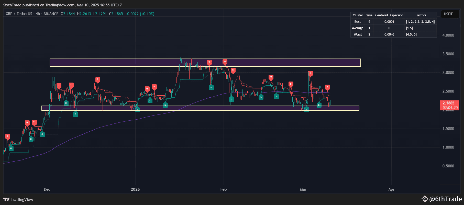 Resistance: The resistance is near the "Best" cluster levels at [1, 2, 2, 3, 3, 4, 4], with a stronger resistance around 2.2613.