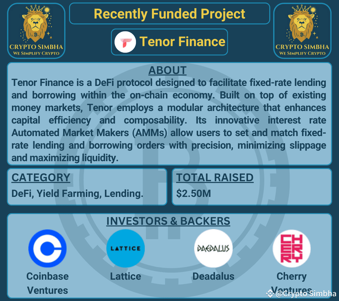 🔹About: Tenor Finance is a DeFi protocol designed to facilitate fixed-rate lending and borrowing within the on-chain economy. Built on top of existing money markets, Tenor employs a modular architecture that enhances capital efficiency and composability. Its innovative interest rate Automated Market Makers (AMMs) allow users to set and match fixed-rate lending and borrowing orders with precision, minimizing slippage and maximizing liquidity. The protocol is non-custodial and self-executing, ensuring transparency and security through audited smart contracts. Tenor's governance-minimized approach inherits risk parameters from underlying money markets, simplifying market listings and reducing overhead. Users can seamlessly transition between fixed and variable rates at maturity, offering a flexible and user-friendly experience. By integrating with platforms like Uniswap V4, Tenor enables direct lending and borrowing through familiar interfaces. The protocol's design supports permissionless market creation, empowering developers, DAOs, and curators to build scalable financial solutions.🚀🌐